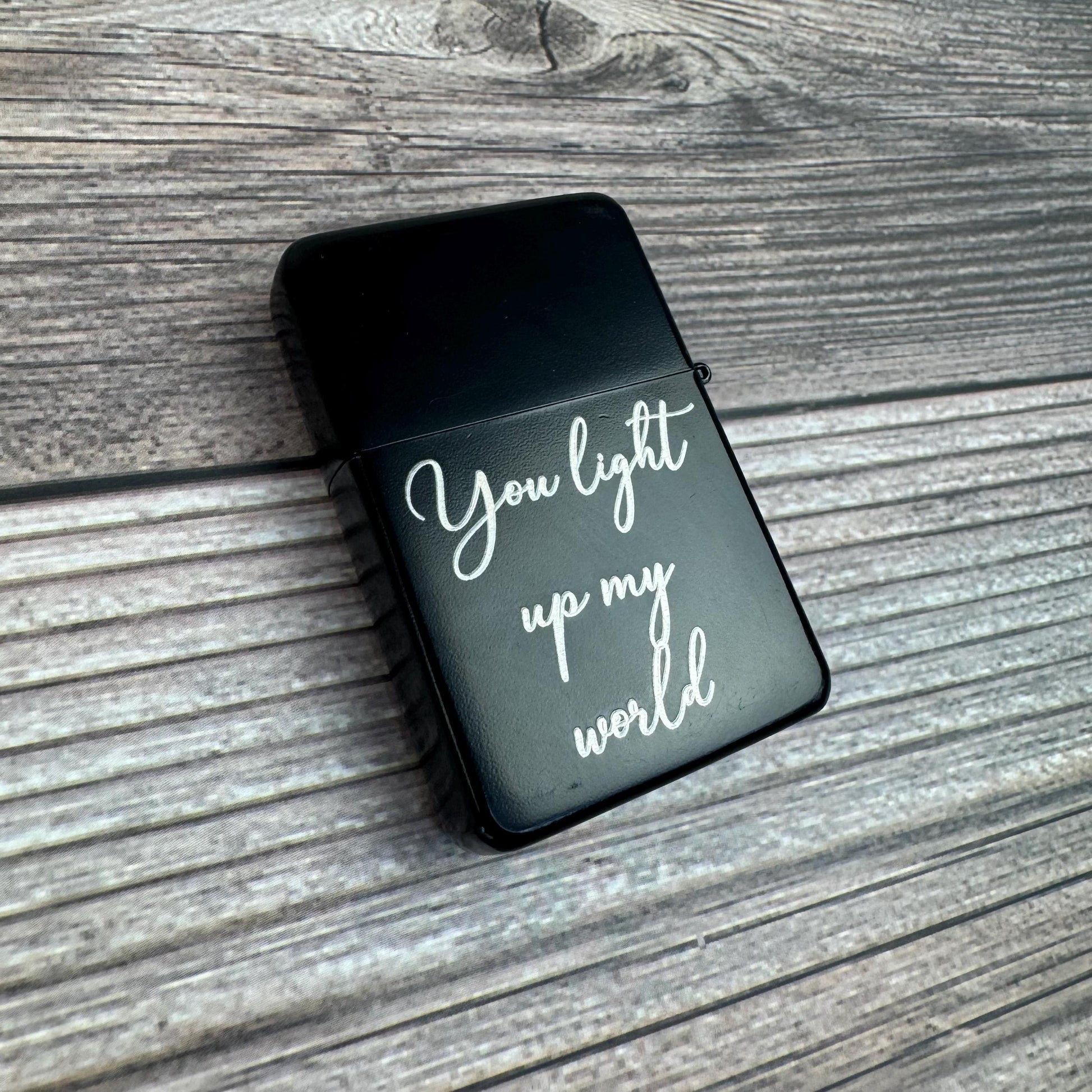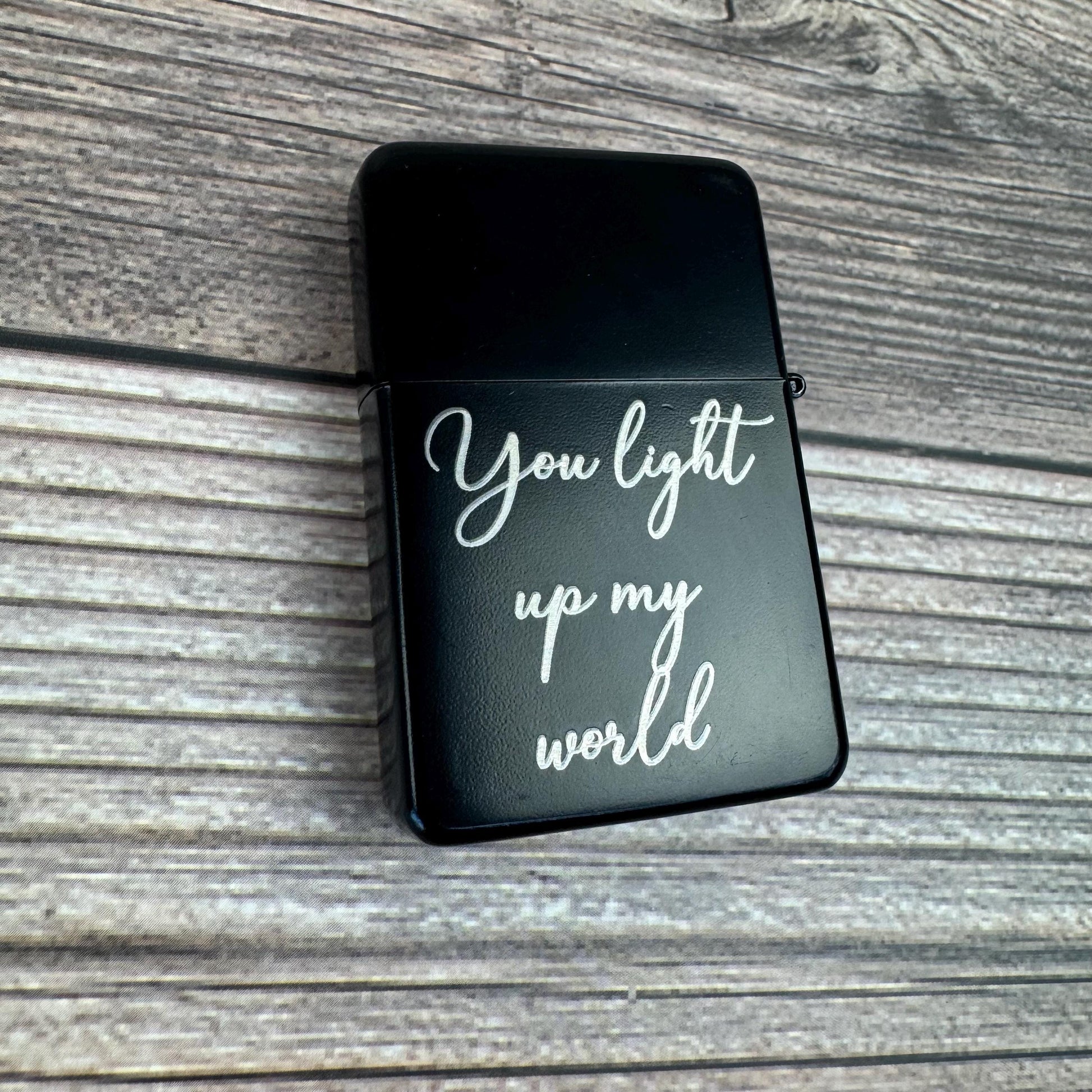 This personalized lighter is a great custom gift for any man in your life. Choose your own saying and your font. Fully customizable gift for your loved ones.