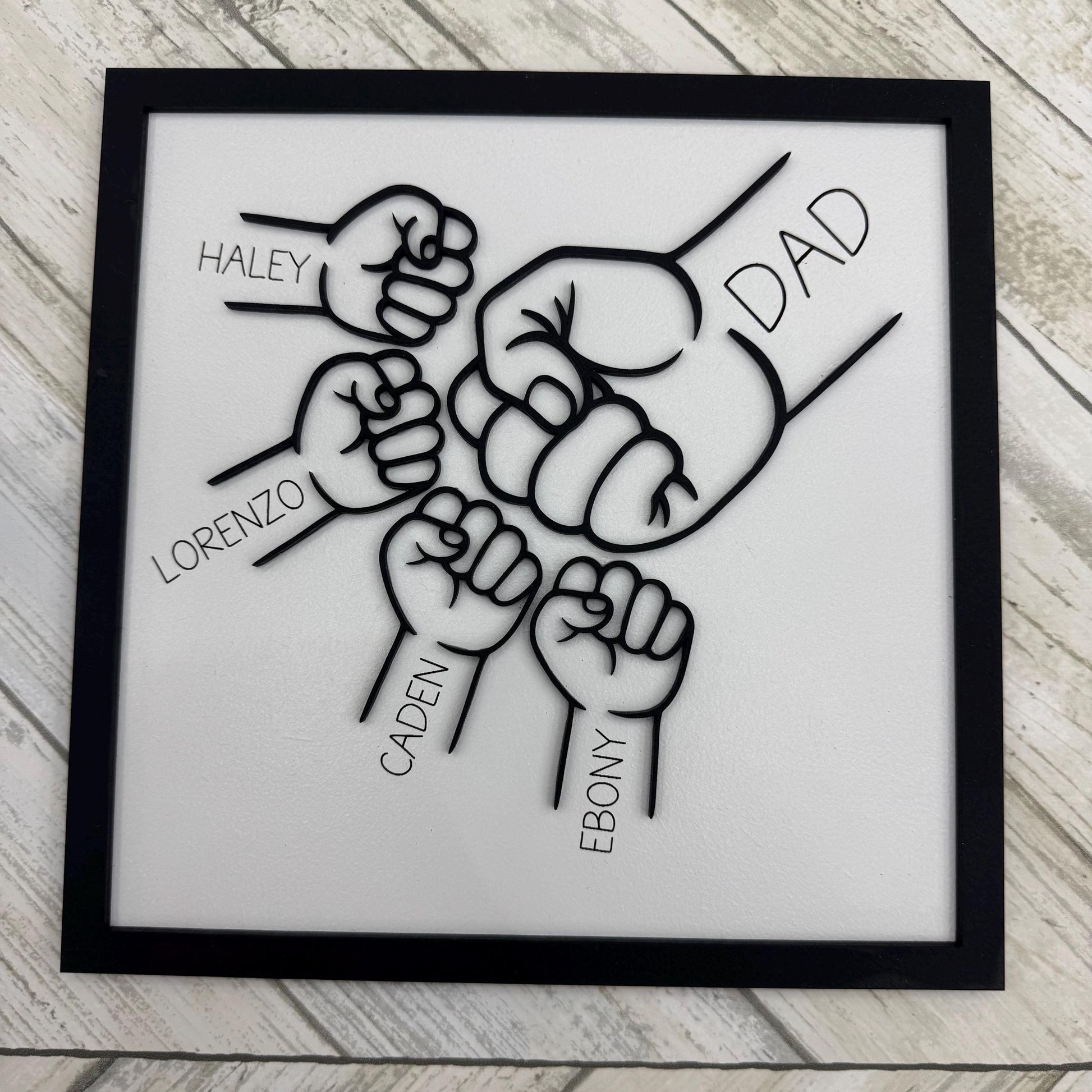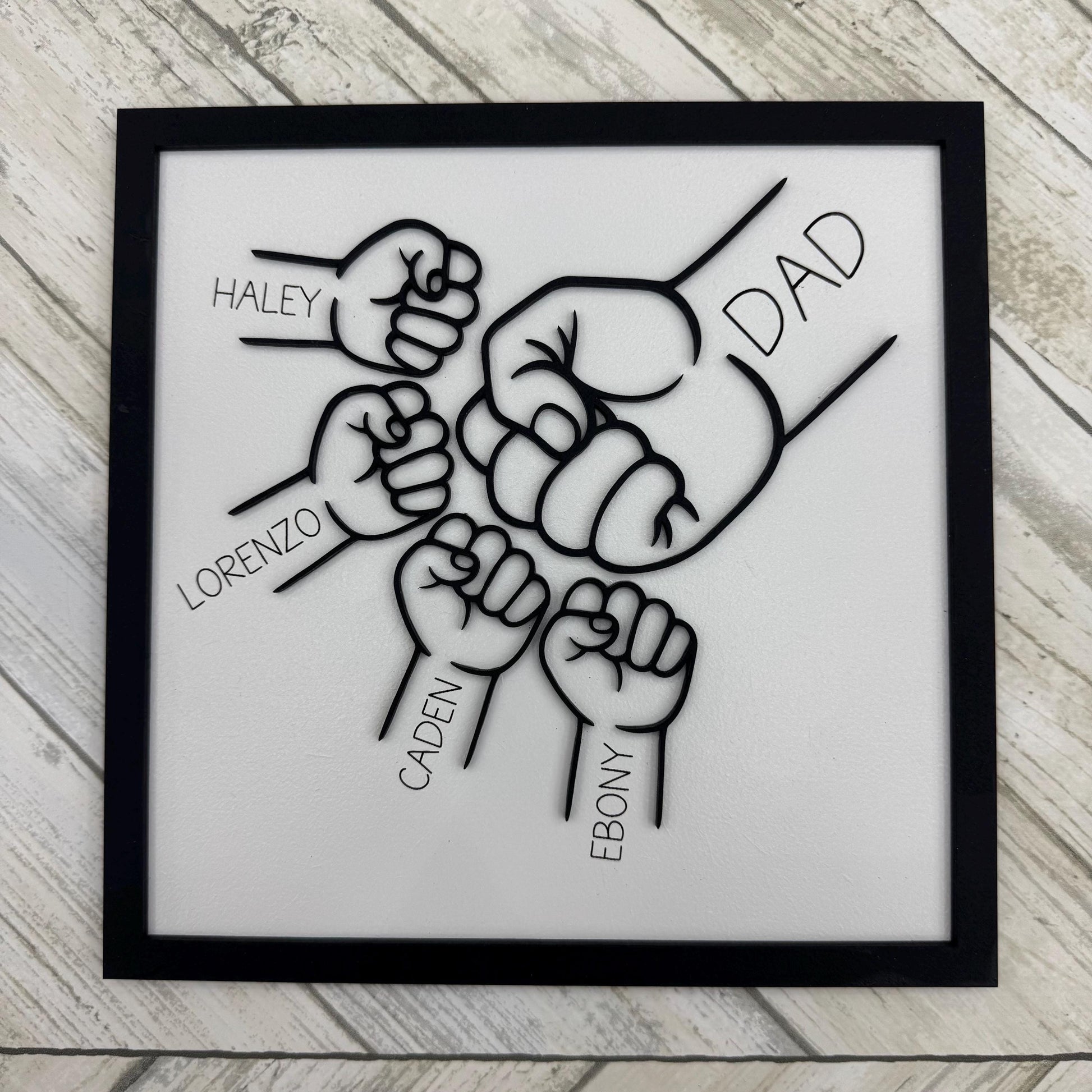 Personalized Father's Day Gift Fist Bump Sign Layered Kids Name Fists Dad Or Grandpa Sign Gift For Dad