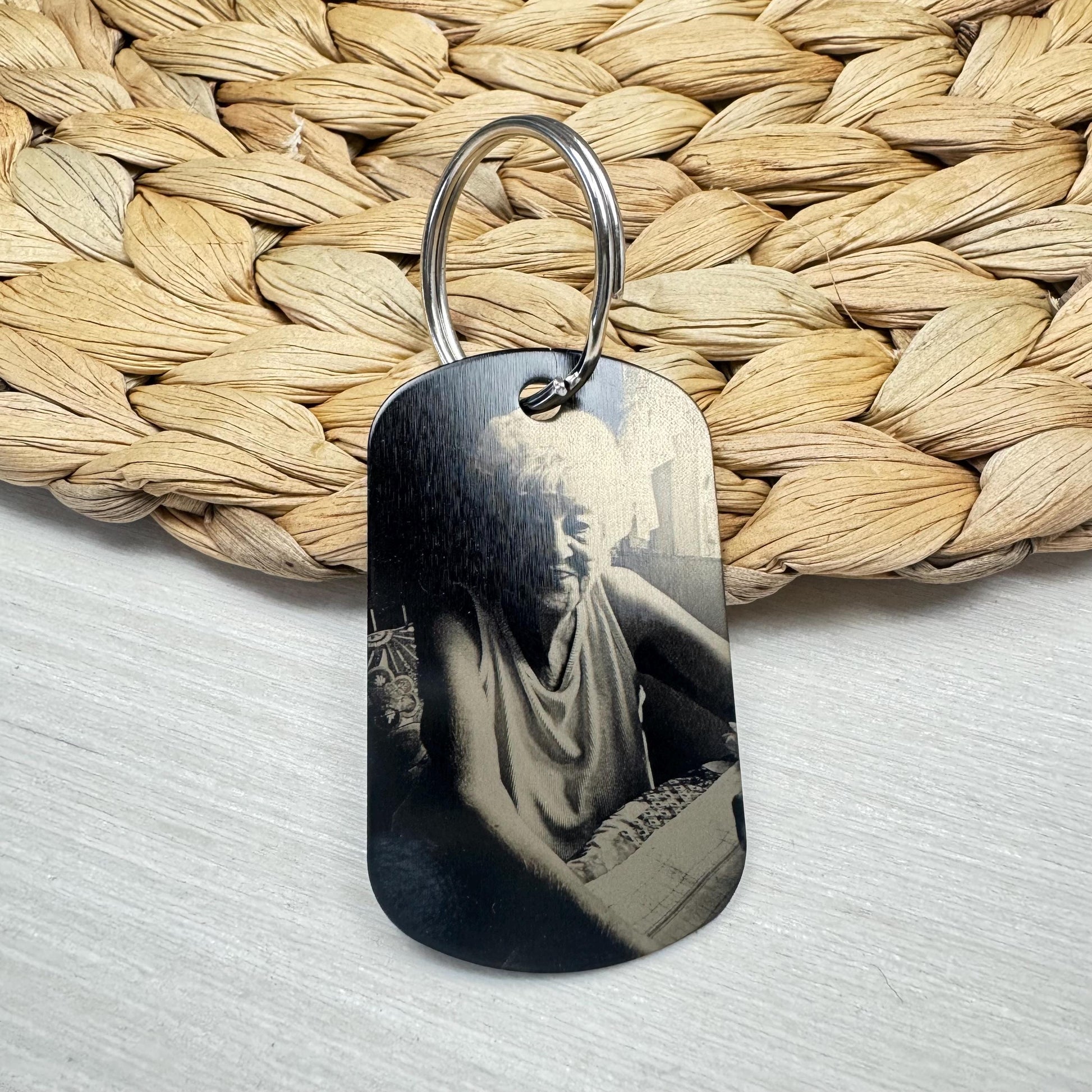 Photo Dog Tag Keychain / Custom Photo Gift / Boyfriend Gift / Photo Engraved Personalized Dog Tag Pendant Keychain / Custom Message Keychain